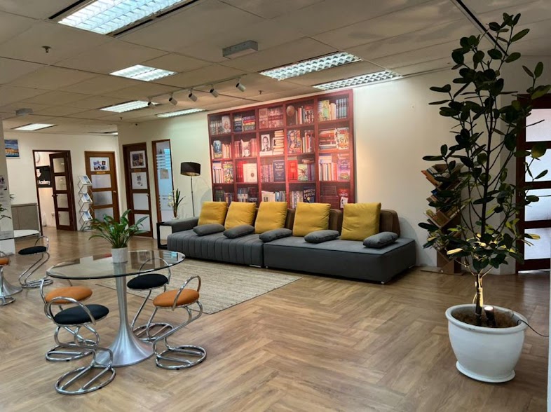 - كما انه يحتوي على مكتبة شاملة تحتوي على مواد ومراجع اللغة الإنجليزية المختلفة.